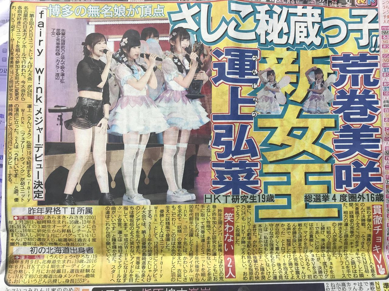 じゃんけん大会の新聞の一面wwwwwwwwwwwww166:2017/09/25(月)09:55:21.56ID:vLHaMCE80.netスポーツ報知日刊スポ ...